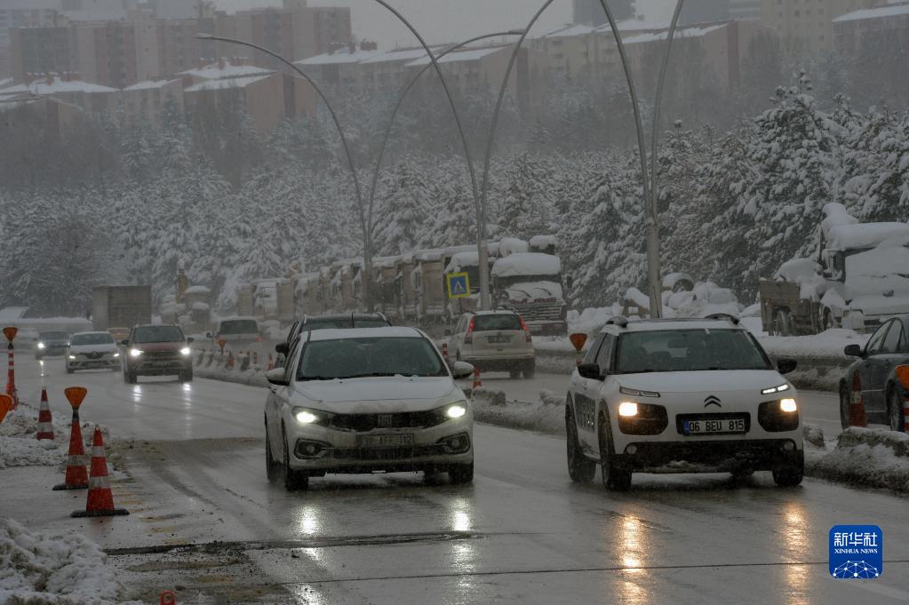 1月24日,车辆在土耳其安卡拉的道路上行驶。新华社发(穆斯塔法·卡亚摄)