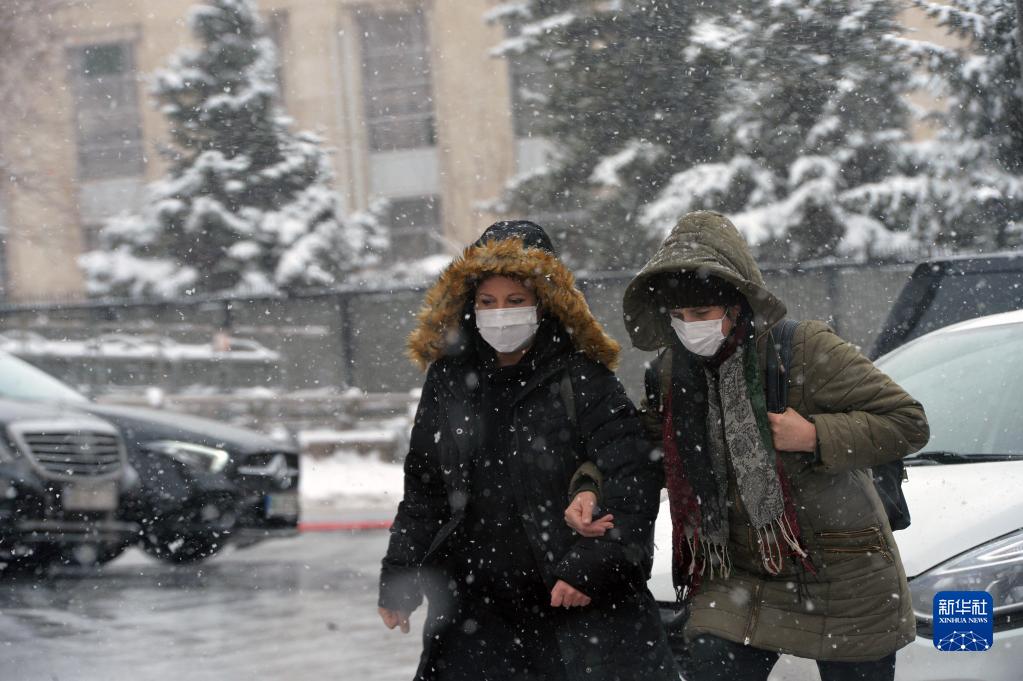 1月24日,在土耳其安卡拉,人们雪中出行。新华社发(穆斯塔法·卡亚摄)
