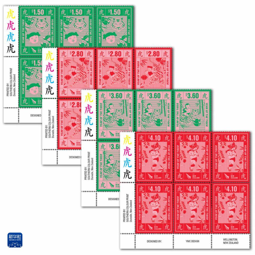 新西兰邮政近日发行2022年中国农历虎年生肖邮票,一套4枚。这是新西兰邮政连续第26年发行中国生肖邮票。