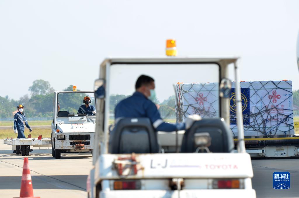 中国政府援助老挝新一批新冠疫苗运抵万象机场