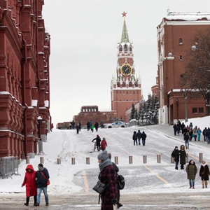 1月26日,人们从俄罗斯莫斯科红场附近走过。