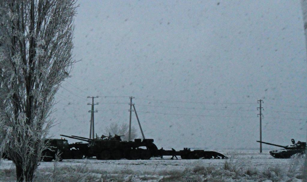 这是2016年12月24日在通往乌克兰顿涅茨克市的路上拍摄的从前线撤回的乌政府军重型火炮和坦克。新华社记者陈俊锋摄