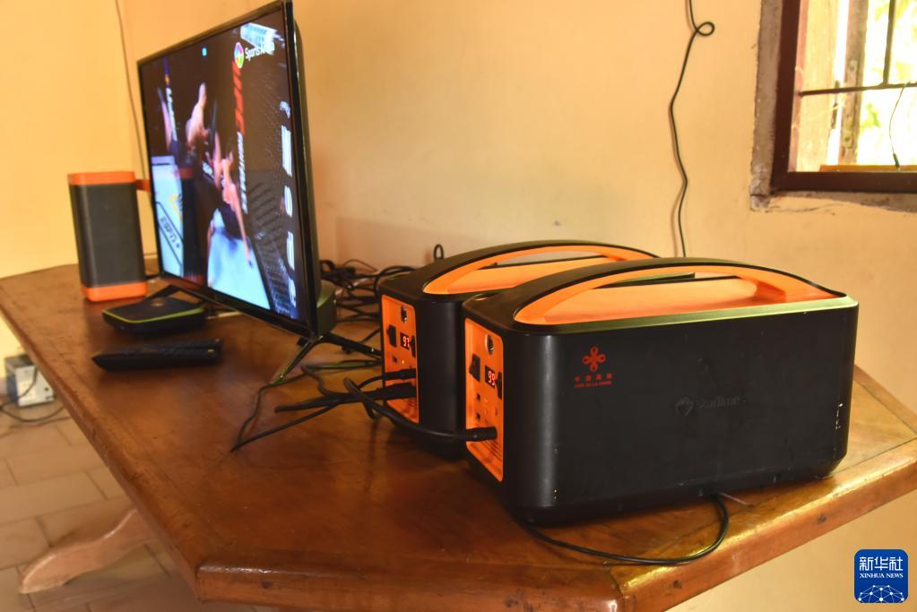 这是1月12日在喀麦隆恩果阿邦村拍摄的“万村通”项目提供的数字电视机及其配套设备。