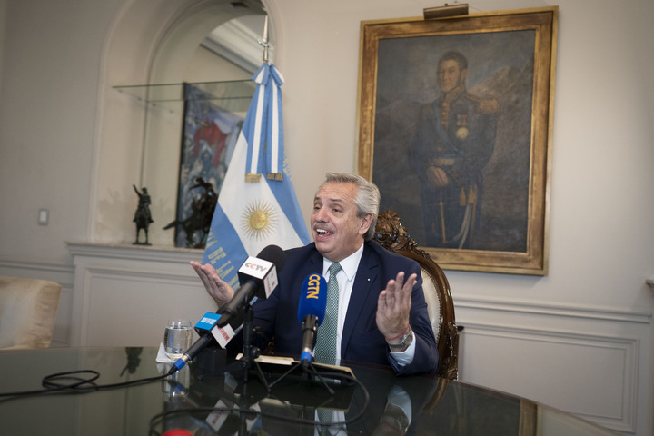 1月25日,阿根廷总统费尔南德斯在首都布宜诺斯艾利斯的总统府玫瑰宫内接受新华社记者采访。新华社发(马丁·萨巴拉摄)