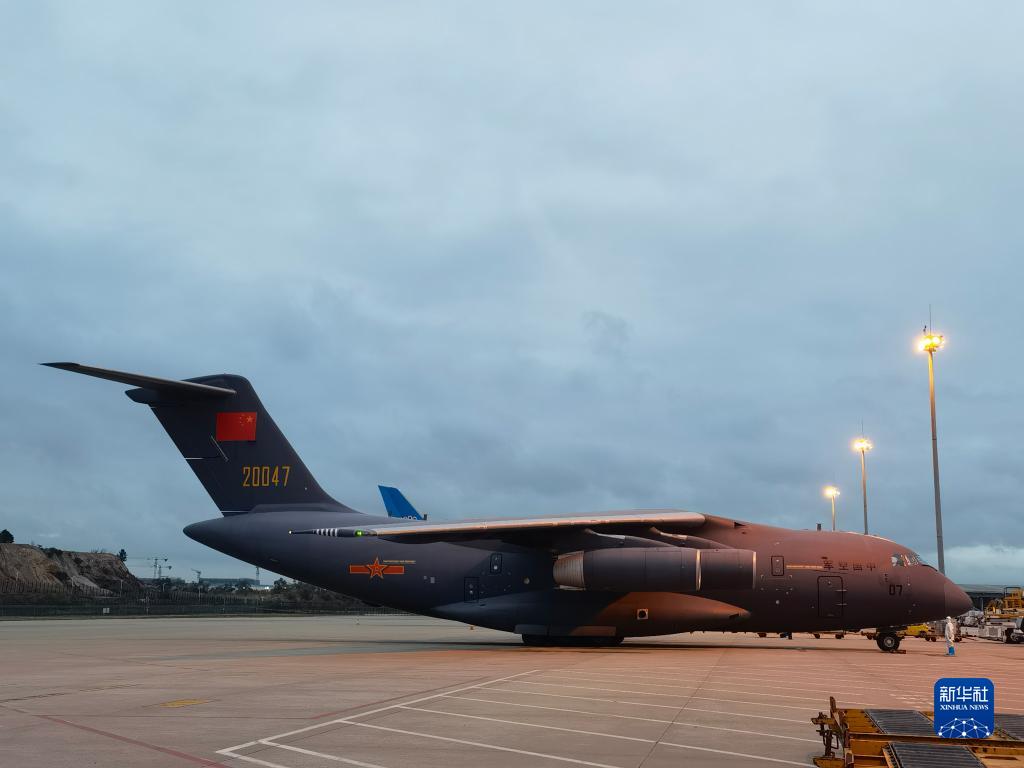 1月29日,中国空军运-20飞机圆满完成赴汤加运送救灾物资任务后顺利返回,降落在广州白云机场(手机照片)。新华社记者 丁增义 摄