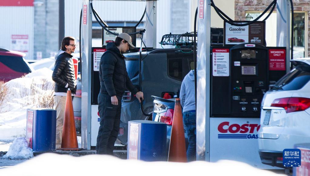 1月29日,在加拿大多伦多一处加油站,人们为汽车加油。