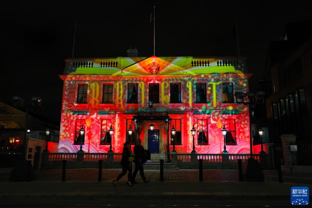 1月28日,在爱尔兰首都都柏林,都柏林市长官邸点亮中国红迎接农历新年。