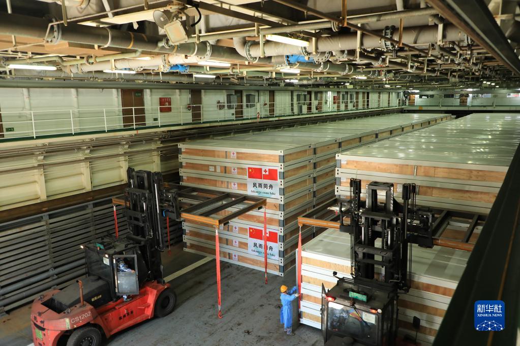 面对装载物资数量大、种类多、分布散等情况,编队科学统筹、严密组织,任务官兵昼夜不停、分组作业,快速高效完成了所有物资装载和固定工作。为做好疫情防控工作,所有物资在装载上舰前,已完成多次消杀处理和抽样检疫。编队指挥舰五指山舰还配备了专业医疗卫生人员和装备,具备疫情防控和医疗救治能力。编队也将根据汤方后续请求,提供力所能及的帮助。
