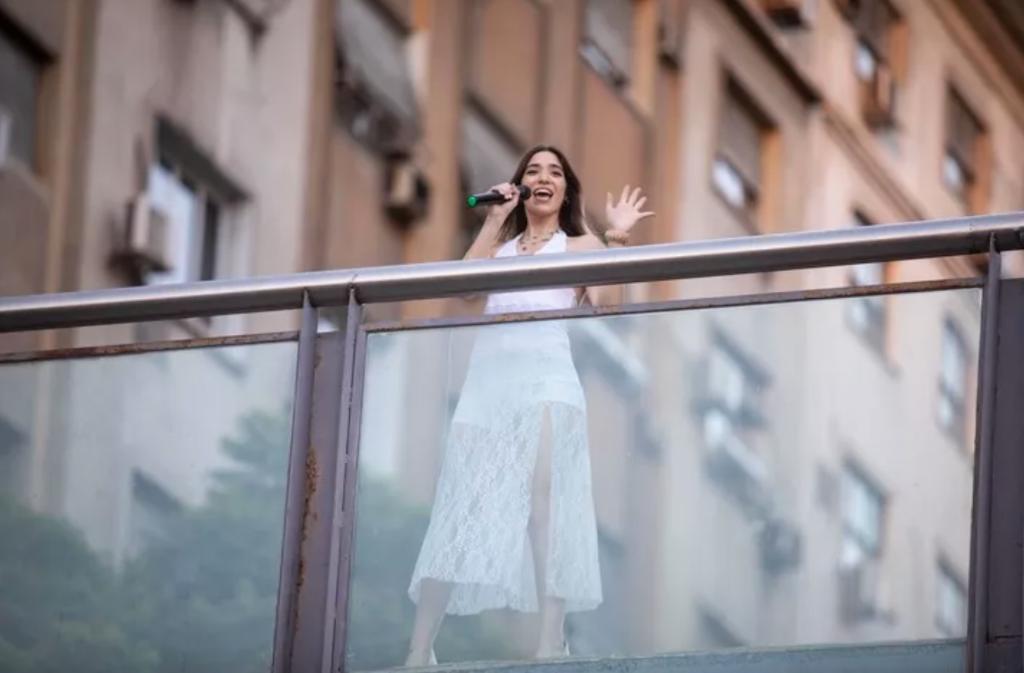 1月28日,在阿根廷布宜诺斯艾利斯,歌手索菲亚·温演唱《一起向未来》。新华社发(马丁·萨巴拉摄)