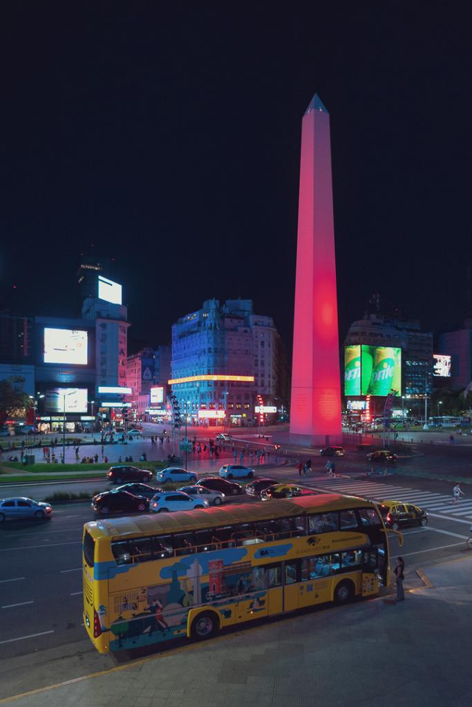 1月31日,阿根廷地标性建筑方尖碑亮起中国红。(图片由第四届“中国春节文化之旅”主办方提供)