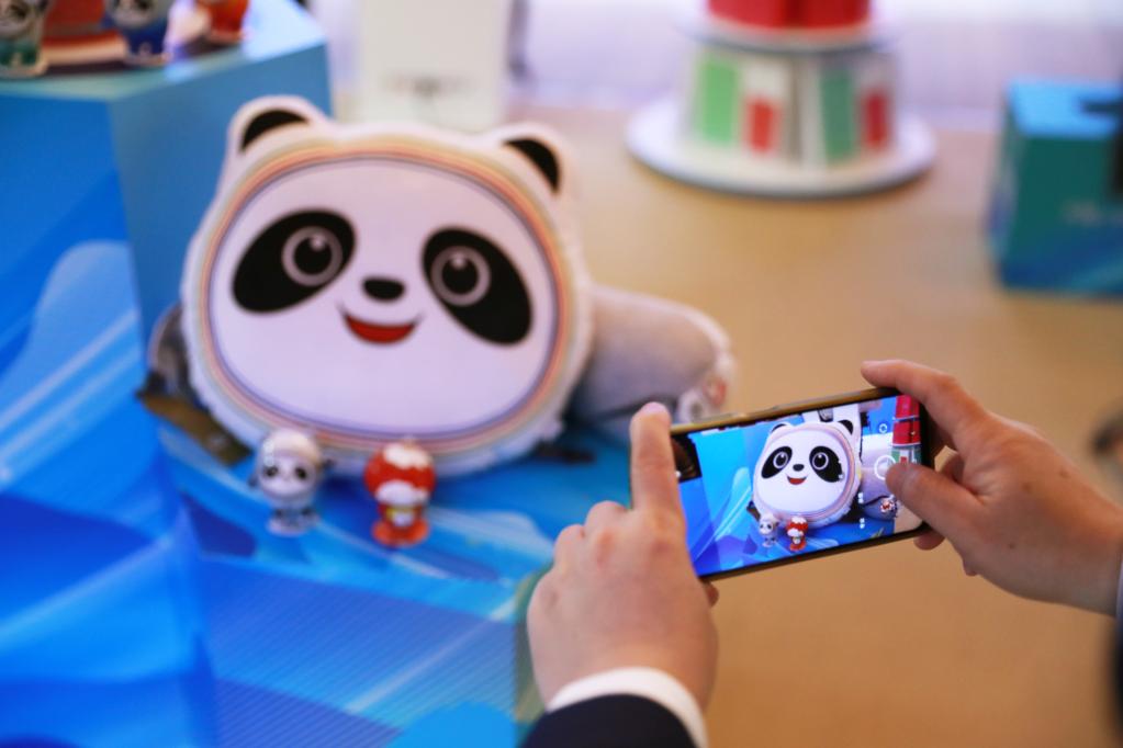 2月1日,一名媒体记者在新闻中心拍摄奥运特许商品。新华社记者陈君清摄