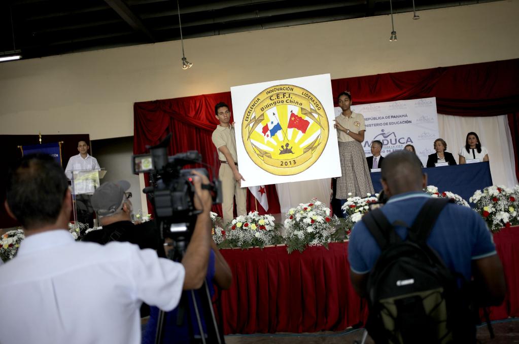 2019年6月18日,巴拿马学生参加一所中西双语学校的揭牌仪式。(毛里西奥·巴伦苏埃拉摄)
