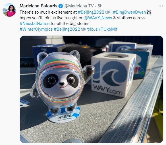 有美国记者几乎每天都会晒“冰墩墩”的照片