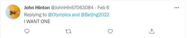 译文:我想要一个(冰墩墩)。