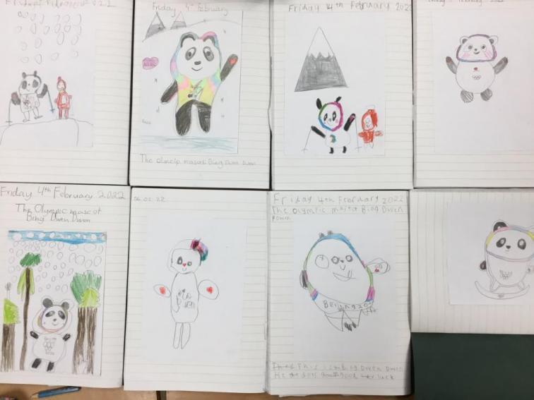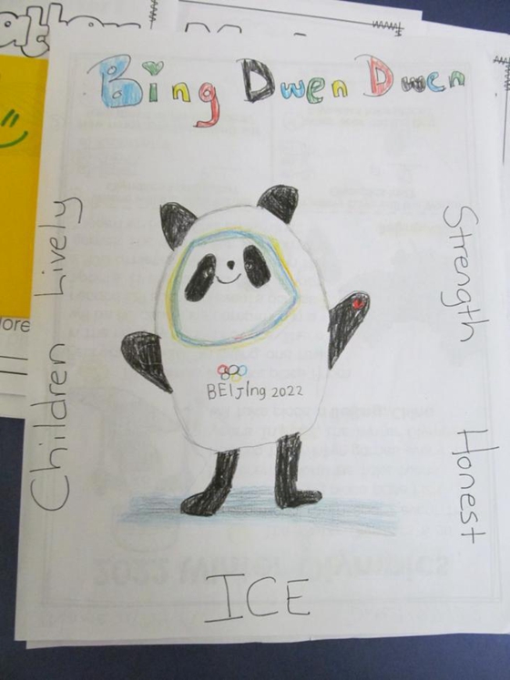 外国小朋友画的“冰墩墩”