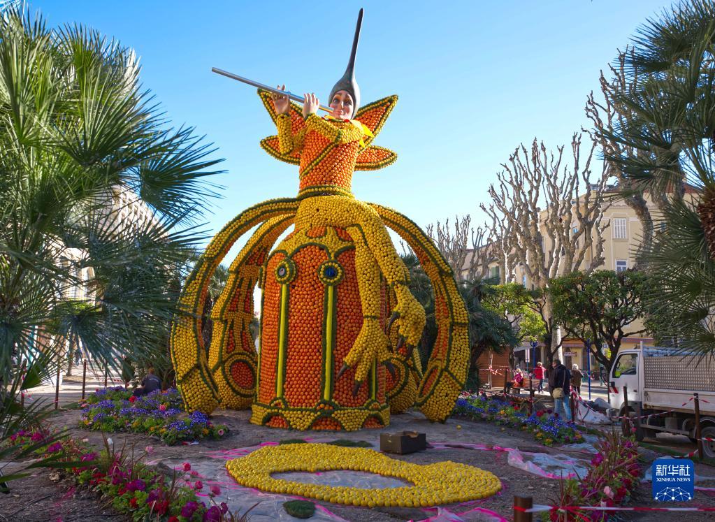 这是2月9日在法国南部小城芒通拍摄的柠檬节艺术装置。