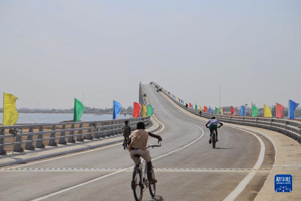 1月16日,人们骑车通过位于塞内加尔法蒂克大区方久尼市的方久尼大桥。