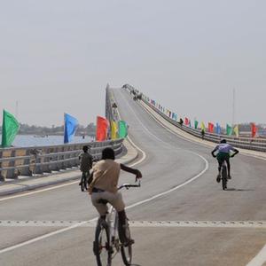 这是1月16日拍摄的位于塞内加尔法蒂克大区方久尼市的方久尼大桥。