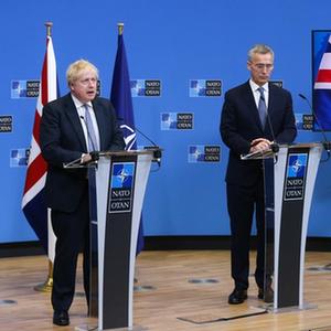 当天,英国首相约翰逊到访比利时布鲁塞尔的北约总部,并与北约秘书长斯托尔滕贝格共同举行新闻发布会。