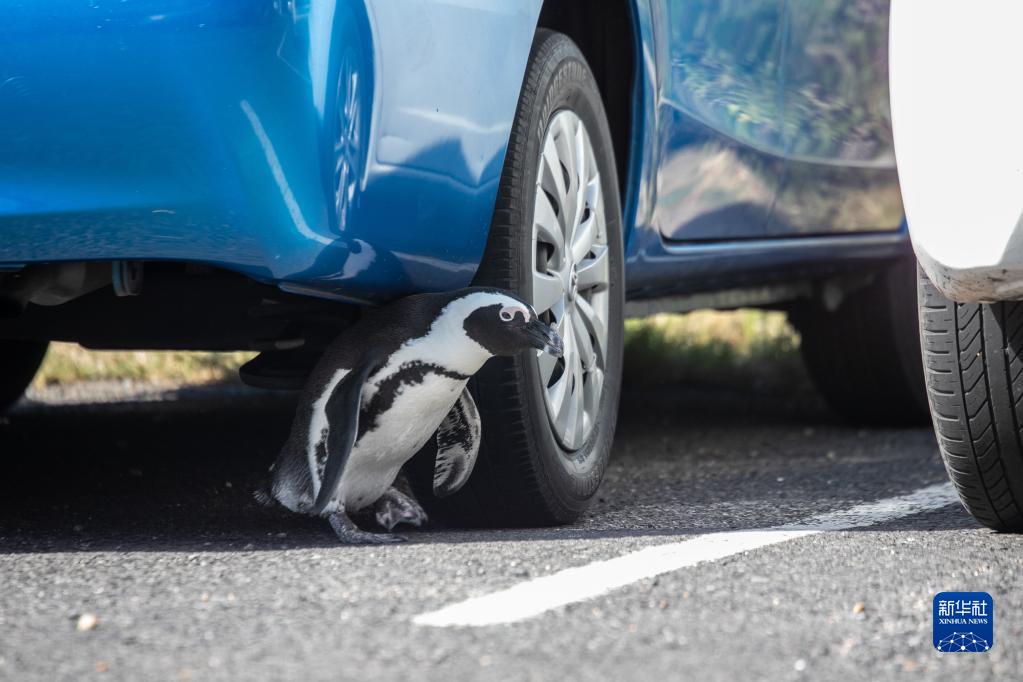 2月5日,在南非西蒙镇的一个停车场,一只非洲企鹅从车底钻出来。
