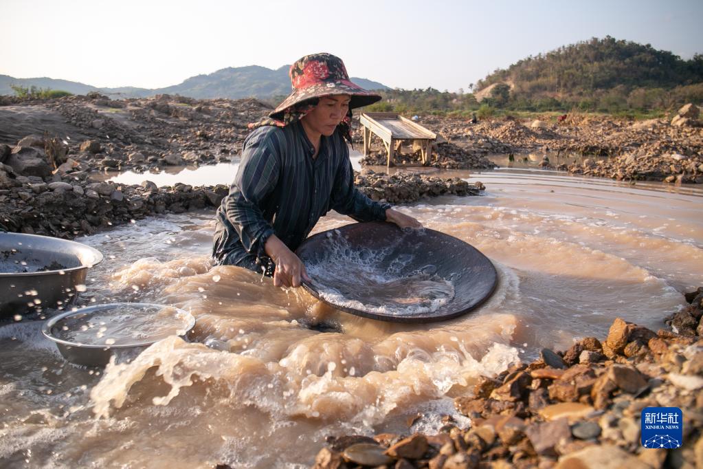每逢旱季,当地村民就会到湄公河的坑洼里淘金。