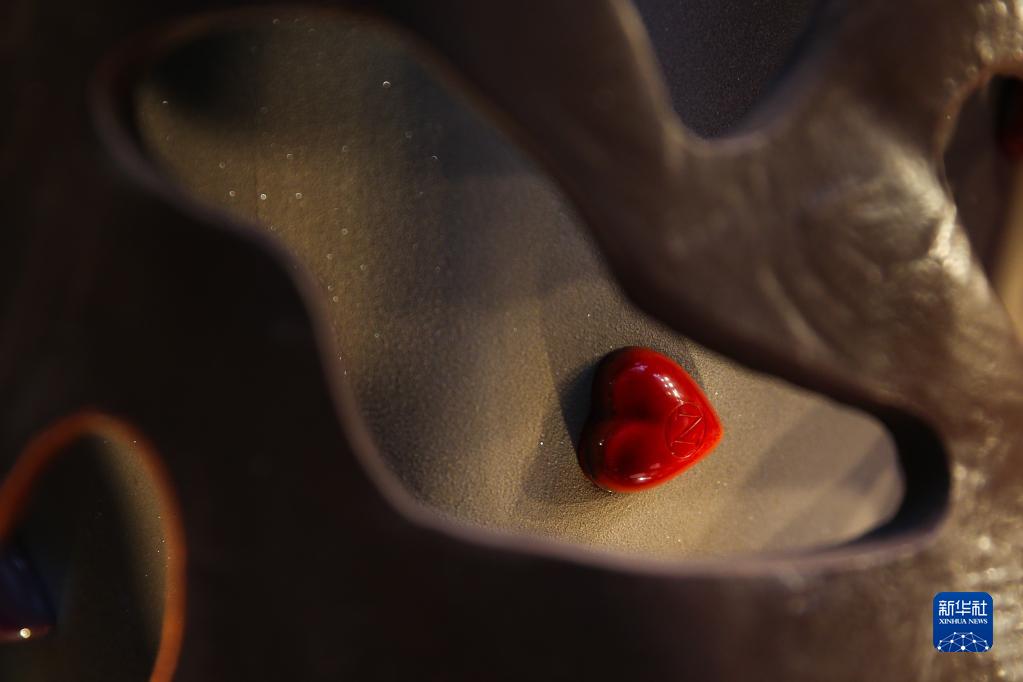 这是2月8日在比利时布鲁塞尔的一家商店拍摄的“情人节”主题巧克力。