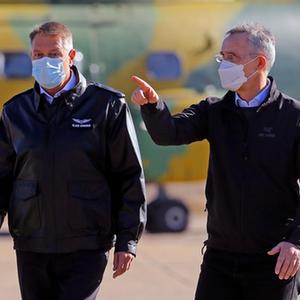 当日,罗马尼亚总统约翰尼斯与北约秘书长斯托尔滕贝格一同视察罗东部米哈伊尔-科格尔尼恰努军事基地。