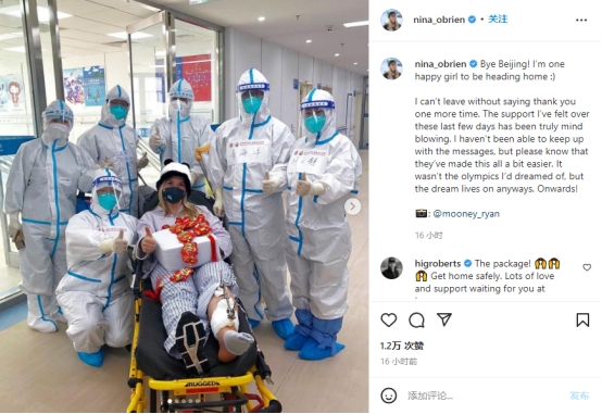 后来,奥布莱恩在社交媒体发文致谢中国医护。她说:“由于开放性腿骨骨折,我在昨晚接受了外科手术,接下来将回家康复。我想对所有照顾我的人说声谢谢,尤其是那些在终点冲向我的人,还有延庆的医生和护士们。”