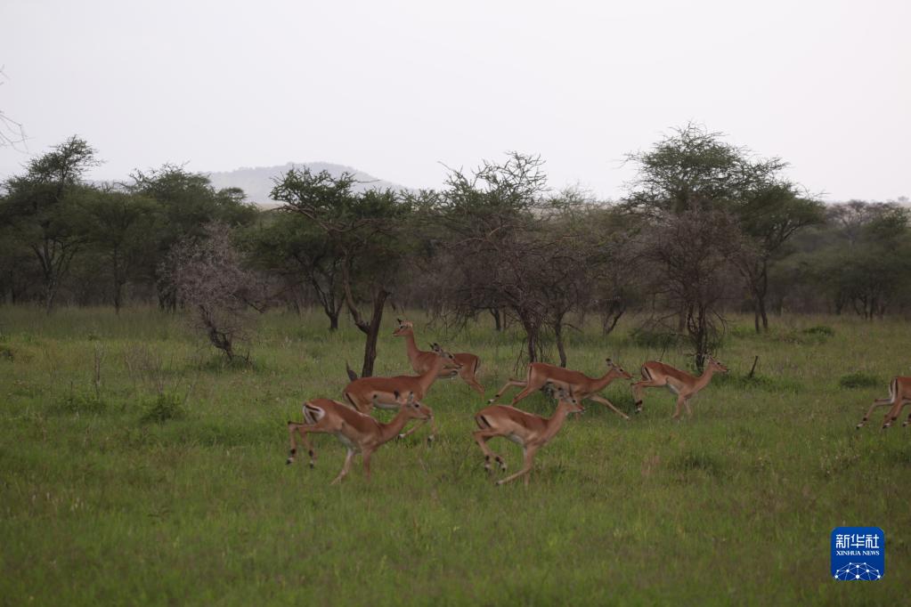 2月11日,在坦桑尼亚塞伦盖蒂国家公园,一群瞪羚正在奔跑。