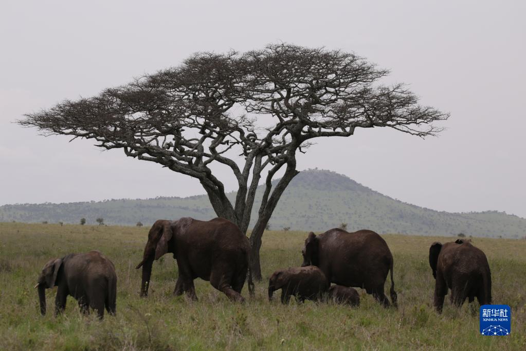 2月10日,在坦桑尼亚塞伦盖蒂国家公园,象群正在行进。