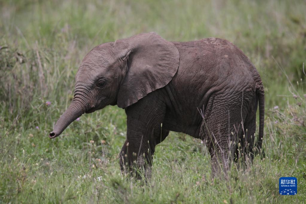 2月10日,在坦桑尼亚塞伦盖蒂国家公园,一只小象正在觅食。