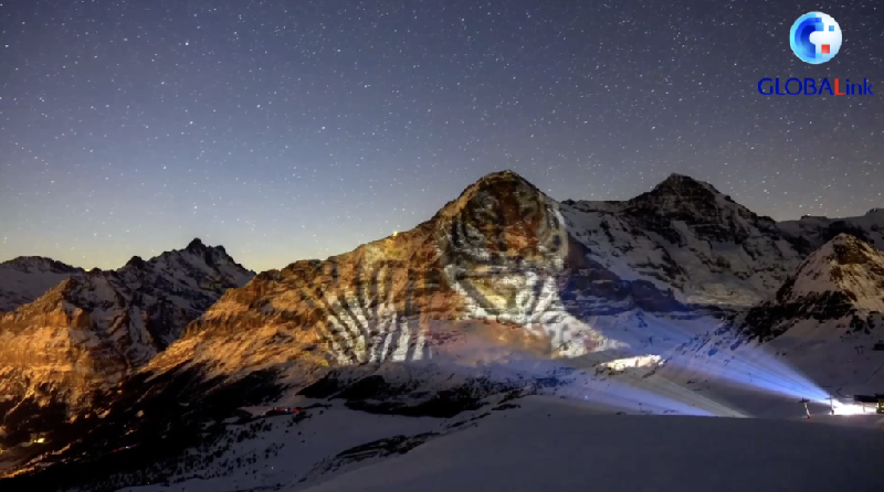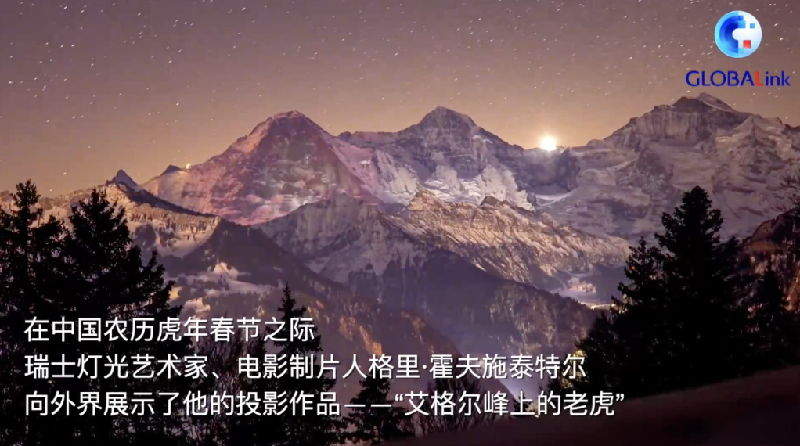 在中国农历虎年春节之际,瑞士灯光艺术家、电影制片人格里·霍夫施泰特尔向外界展示了他的投影作品——“艾格尔峰上的老虎”。