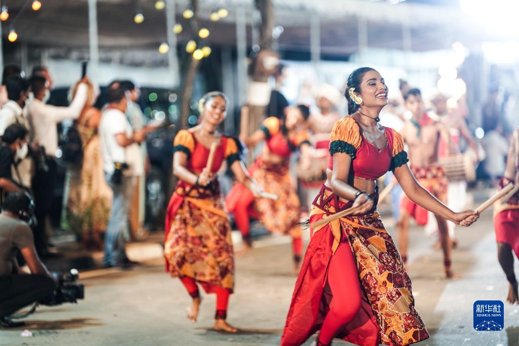 2月15日,舞者在斯里兰卡科伦坡参加“纳瓦姆月圆节”游行。