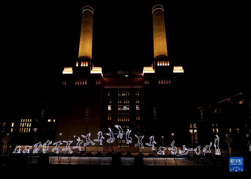 这是2月17日在英国伦敦巴特西发电站灯光节上拍摄的灯光艺术装置。