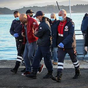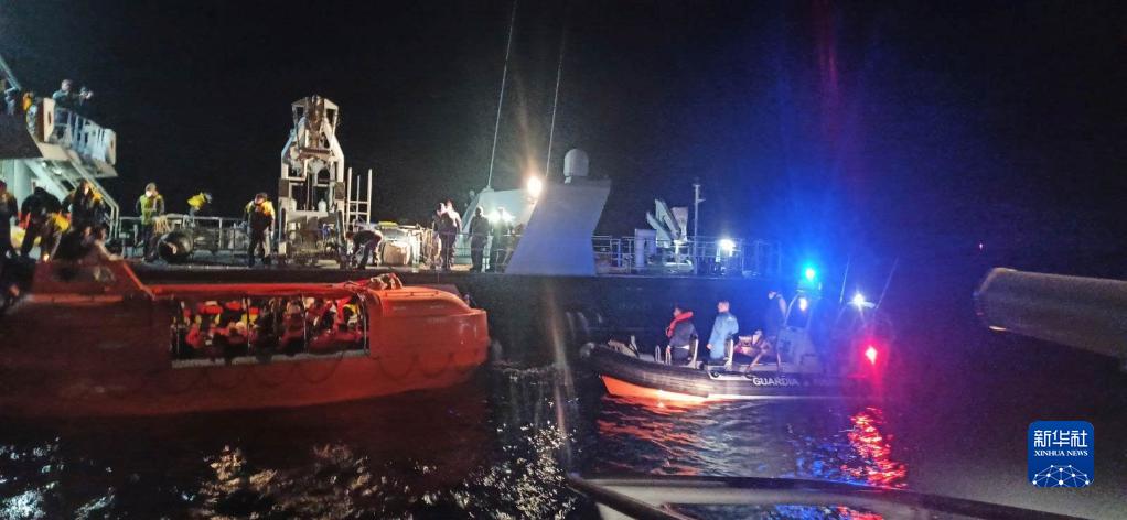 2月18日,希腊和意大利海岸警卫队正在联合救援从救生艇上逃生的渡轮人员。