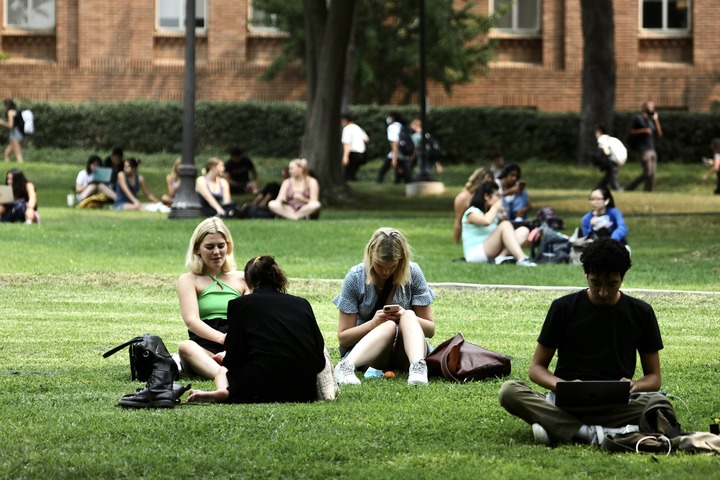 图为2021年9月23日在美国加州大学洛杉矶分校校园内拍摄的学生。(新华社发)