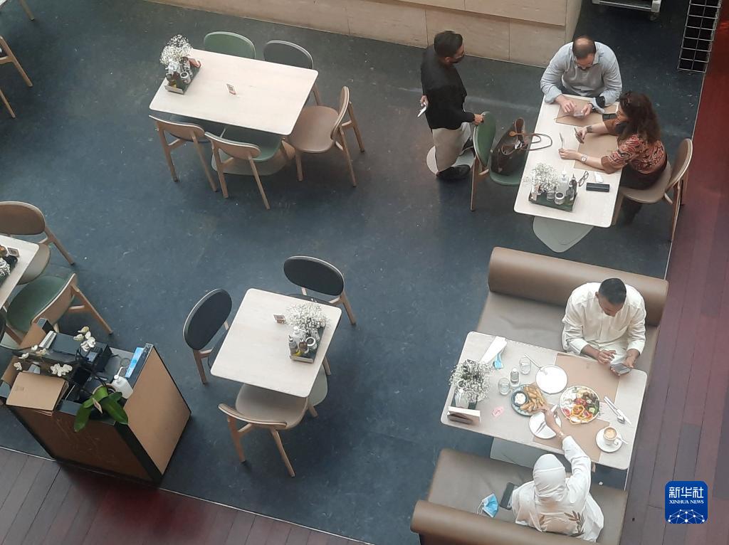 2月20日,在科威特费尔瓦尼耶省,人们坐在一处商场的餐厅内。