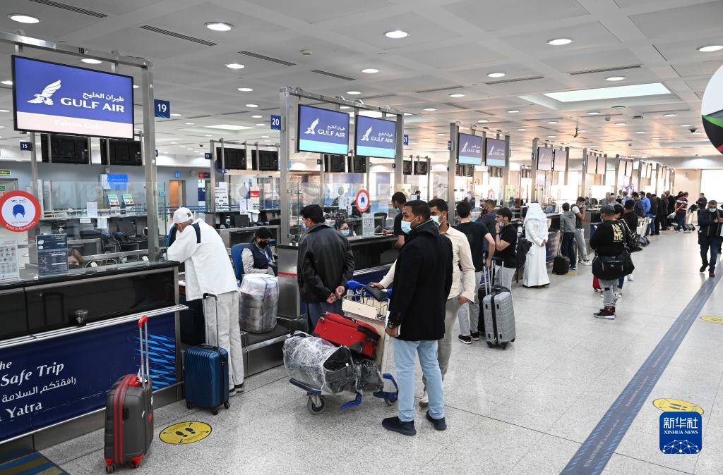 2月20日,在科威特费尔瓦尼耶省的科威特国际机场出发大厅,旅客办理登机手续。