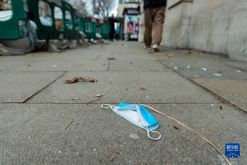 2月21日,在英国伦敦,一个口罩被丢弃在街上。