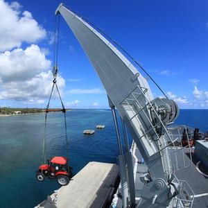 赴汤加执行运送救灾物资任务的中国海军舰艇编队五指山舰驶离努库阿洛法港时,官兵分区列队站坡(2月23日摄)。