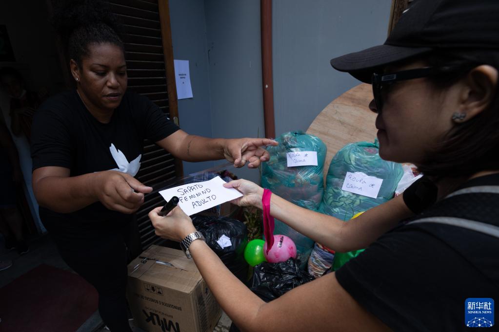 2月22日,在巴西里约热内卢州城市彼得罗波利斯,志愿者对捐赠物资进行分类。
