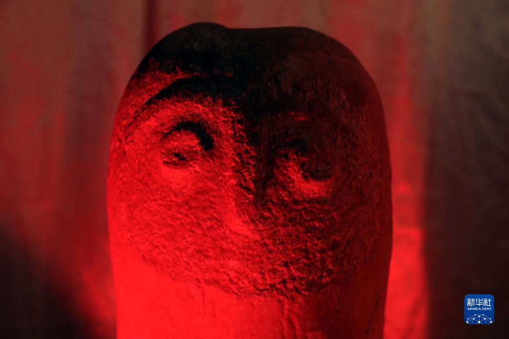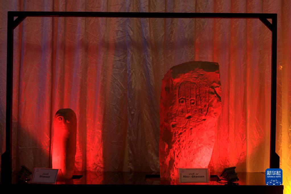 这是2月22日在约旦首都安曼拍摄的雕刻着精细的人物形象的石碑。新华社发(穆罕默德·阿布·古什摄)