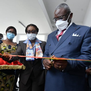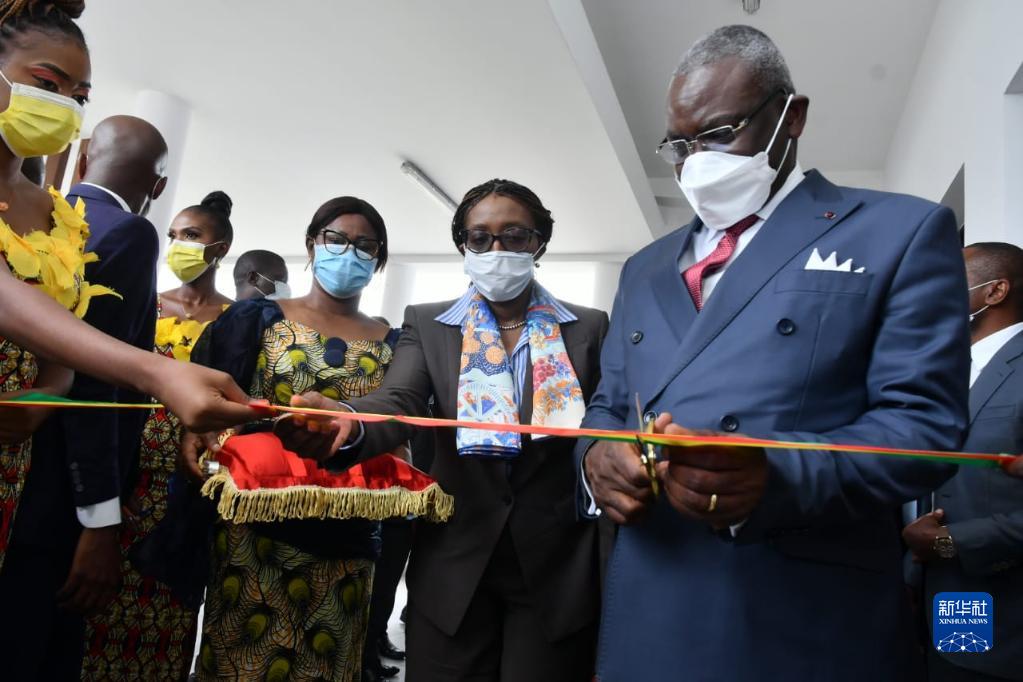 2月24日,刚果(布)总理马科索(右)在布拉柴维尔为人工智能研究中心剪彩。新华社发(联合国驻刚办事处供图)