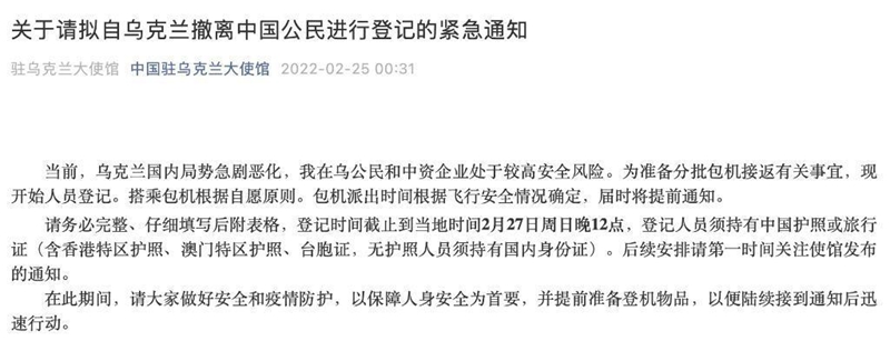 (中国驻乌克兰大使馆微信公众号通知部分截图)