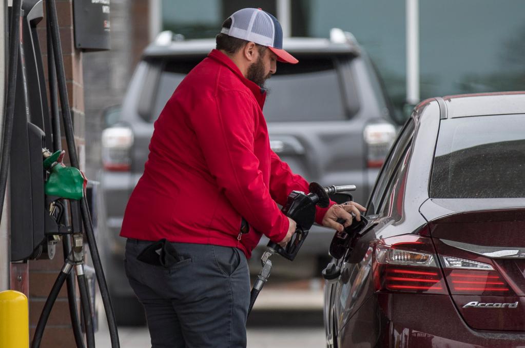 2月24日,在美国得克萨斯州圣安东尼奥市,一名男子在加油站加油。(新华社发,尼克·瓦格纳摄)