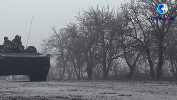 俄罗斯国防部25日发布了一段视频,据称是俄罗斯支持的卢甘斯克民兵军用车辆渡过北顿涅茨河。