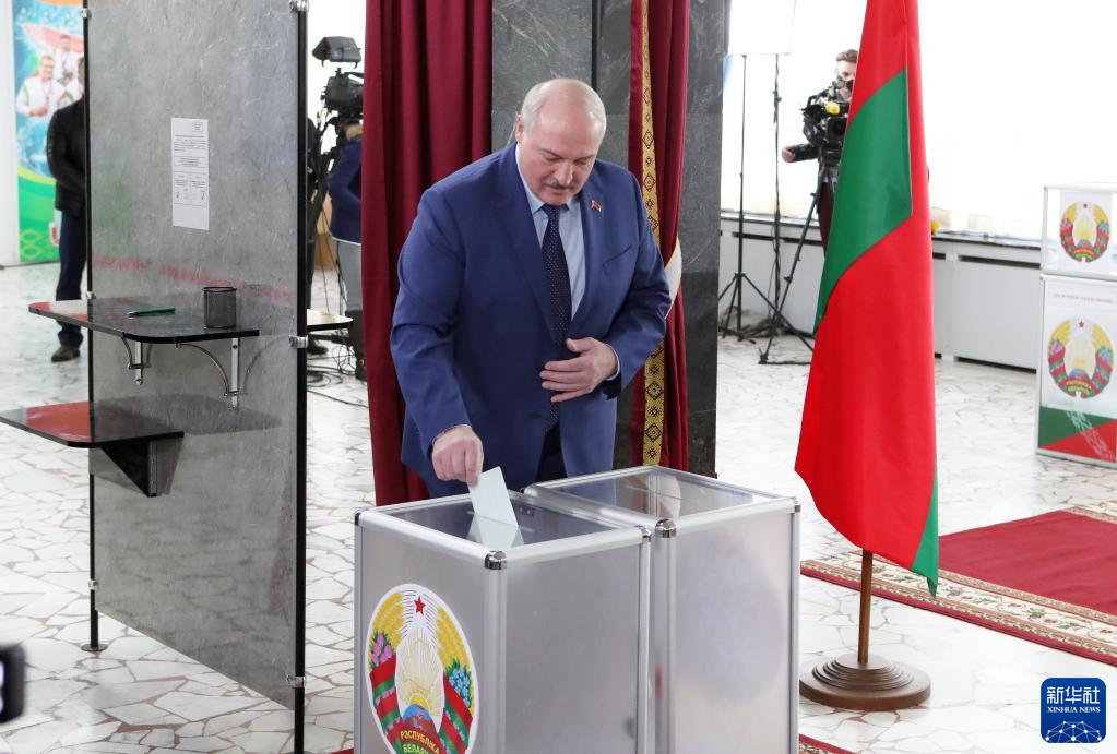 2月27日,在白俄罗斯首都明斯克,白总统卢卡申科在投票点投票。