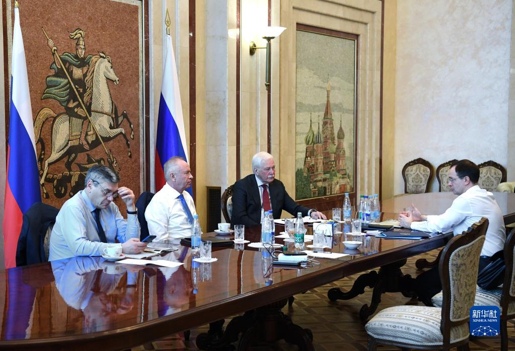 2月28日,俄罗斯代表团团长梅金斯基在白俄罗斯戈梅利州接受媒体采访。新华社/卫星社