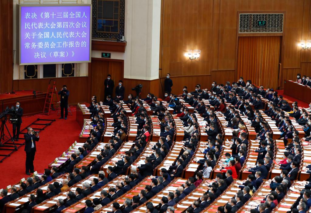 2021年3月11日,第十三届全国人民代表大会第四次会议在北京人民大会堂举行闭幕会。(新华社记者张玉薇摄)