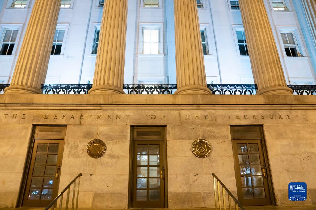 这是2月28日在美国首都华盛顿拍摄的美国财政部大楼。